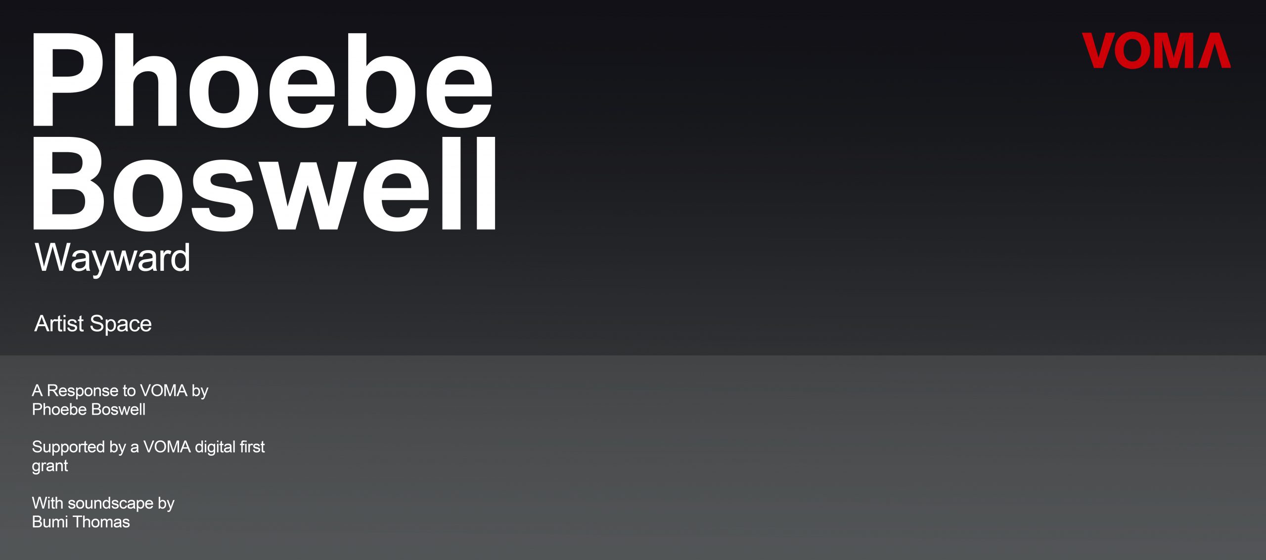 For VOMA, Phoebe will create a unique work, along with a soundscape created by Scottish-Nigerian singer-songwriter Bumi Thomas; part of VOMA’s Digital Firsts Commission Programme.